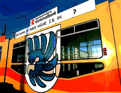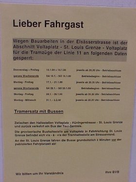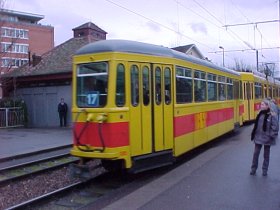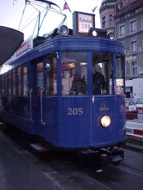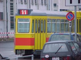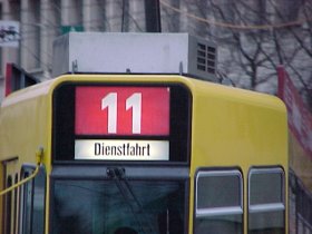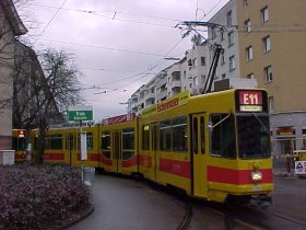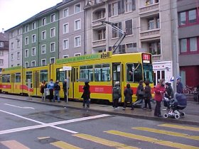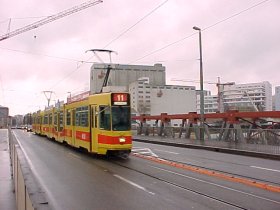 Die Linie 11 auf der Dreirosenbrücke. Man beachte