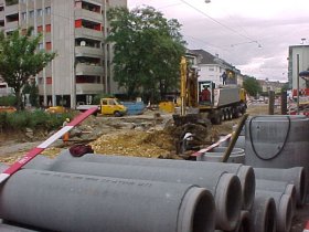Baustelle der Linie 11 beim Ruchfeld.