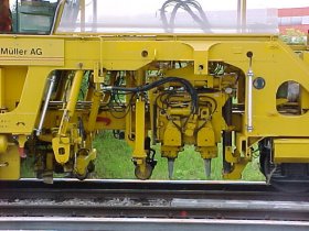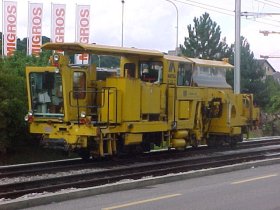 Eine extra herbeigeholte Gleisbaumaschine.
