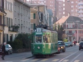 Der "Schwerzug" kurz nach der Haltestelle Im langen Loh, in Richtung Neubad.