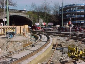 Gespenstig wirkt die Rampe der neuen Trambrücke...