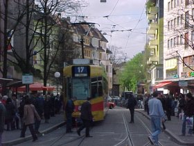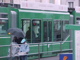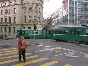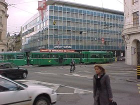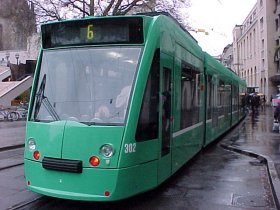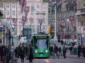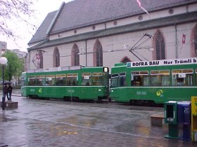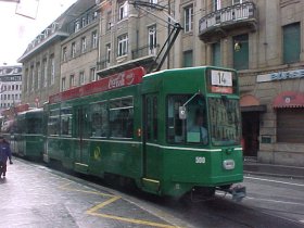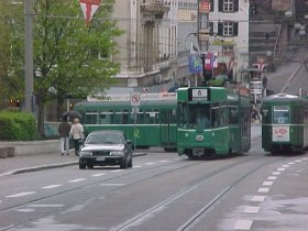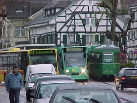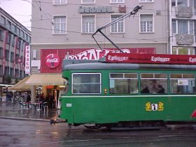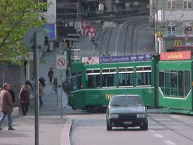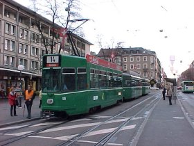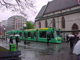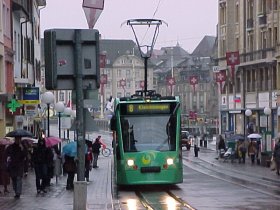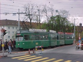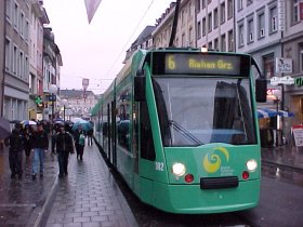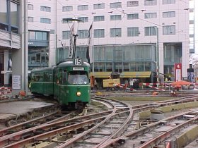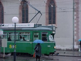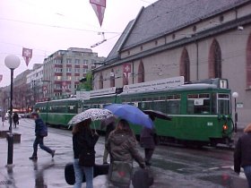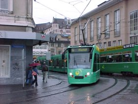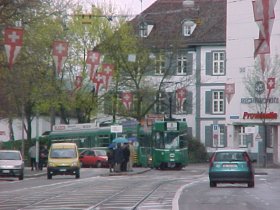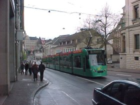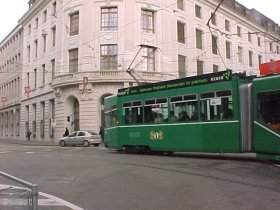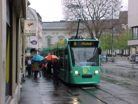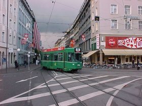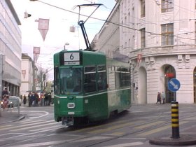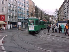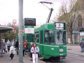 Einfahrt des 6er am Kunstmuseum von der Wettsteinbrücke her.