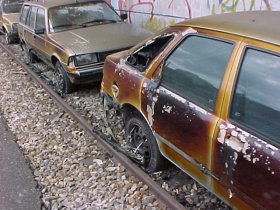 Sogar die gegenüberliegenden Autos sind "angebrutzelt"