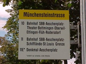 Neues Haltestellenschild an der Münchensteinerstrasse