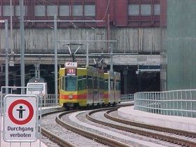 Eine DüWag-Komposition auf der Linie 14 am Zeughaus