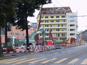 "Schienenhügel" an der Haltestelle Kannenfeldplatz in Richtung Burgfelderplatz. Wer's nicht glaubt, der soll selber mal drüber fahren!