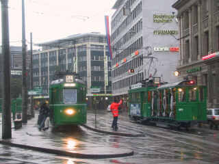 BVB: Am Sonntag Abend um ca. 21:30 kam es im Bereich Messeplatz - Gewerbeschule zu einer Fahrleitungsstörung. Der 6er wurde getrennt. Von Riehen her wendete er rückwärts am Badischen Bahnhof. Von Allschwil her fuhr er auf der Route Dreirosenbrücke - Messeplatz- Riehenring - Dreirosenbrücke. Der 2er fuhr vom Messeplatz aus via Riehenring zum Wiesenplatz und wendete dort. (St. Wehrli)
