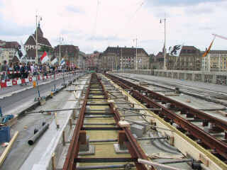 In der Nacht Mo 8/7/02 auf Di 9/7/02 werden die Anschlüsse auf das neue Gleis Richtung Riehen hergestellt.