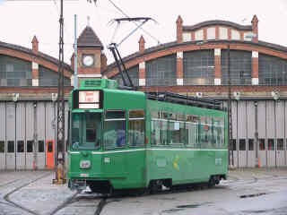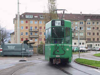 Der Düwag 631 stand am Morgen im Dreispitz, am Nachmittag im Wiesenplatz. Verschiebungen von Fahrzeugen von Depot zu Depot seien im Moment an der Tagesordnung. (H. Ziegler)