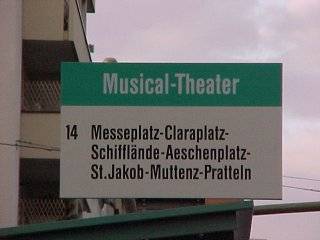 Ab 14. Oktober 2002 wird die neue Haltestelle Musical Theater im Riehenring in Betrieb genommen. Die Neue Haltestelle ermöglicht u.a. den Besuchern, mit der Tramlinie 14 direkt vor das Musical Theater zu fahren. (BVB/M. Ehmann)