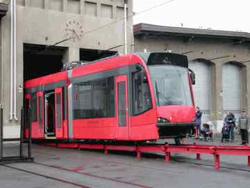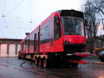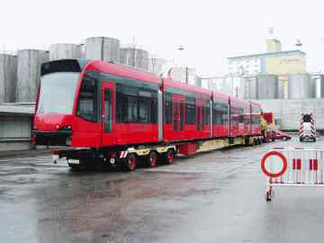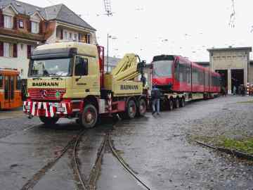 Am Dienstag, 19. November 2002, ist das erste der fünfzehn neuen hundertprozentigen Niederflurtrams im Depot Burgernziel in Bern eingetroffen. Der Transport des 31,5 Meter langen und 2,3 Meter breiten Fahrzeugs erfolgte per Sattelschlepper.